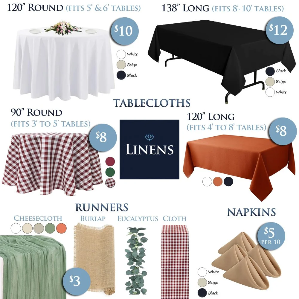 We like to party! After a wedding of our own, we’ve been collecting inventory for receptions, banquets and gatherings in supplies & decor that we want to share with our friends in the Treasure Valley. While we build the back-end to the site, just go through inventory and pricing below, tell us what you need and when and we’ll deliver anything that’s available to make your gathering memorable.